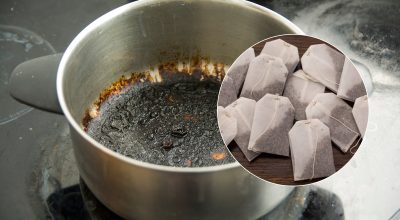 Συνιστάται να μουλιάζετε τις κατσαρόλες και τα τηγάνια σε ζεστό νερό, να προσθέτετε χρησιμοποιημένα φακελάκια τσαγιού και να τα αφήνετε για μερικές ώρες.