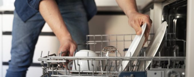 Τα εύθραυστα γυάλινα σκεύη, όπως φλάουτα, ποτήρια και φλιτζάνια, τοποθετούνται στο επάνω διαμέρισμα. Καλό είναι να τα τοποθετείτε σε ειδικές θήκες και να τα τοποθετείτε χωριστά από τα άλλα σκεύη, ώστε να μην καταστραφούν κατά το πλύσιμο. Θα πρέπει να τοποθετούνται με το κάτω μέρος προς τα πάνω και υπό ελαφρά γωνία για καλύτερη αποστράγγιση του νερού.