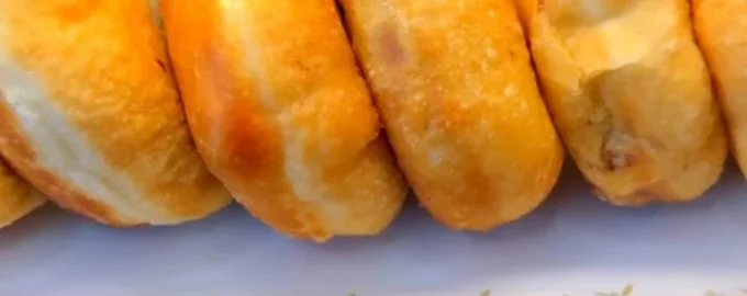 - Ζυμώνετε τη ζύμη, τη χωρίζετε σε 12-14 κομμάτια. Ανοίξτε το καθένα από αυτά, βάλτε τη γέμιση και σχηματίστε μια πίτα. Τηγανίστε όλες τις πίτες σε φυτικό λάδι μέχρι να πάρουν χρώμα και από τις δύο πλευρές.
