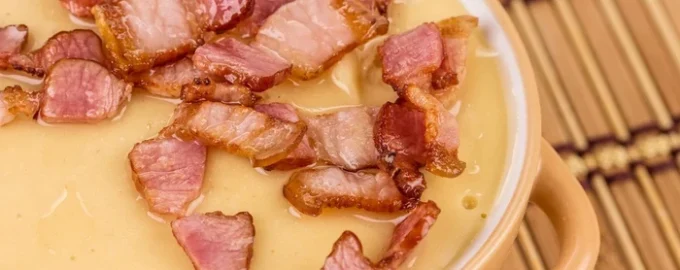 Φασολάδα με λιωμένο τυρί και μπέικον, που παρασκευάζεται πολύ γρήγορα και εύκολα, χωρίς να βράσει ζωμός