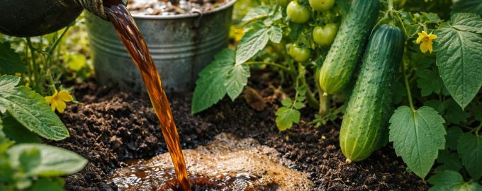 Ρίξτε το έγχυμα αυστηρά κάτω από τη ρίζα, αποφεύγοντας να φτάσει στα φύλλα, ώστε να μην προκληθεί ηλιακό έγκαυμα.