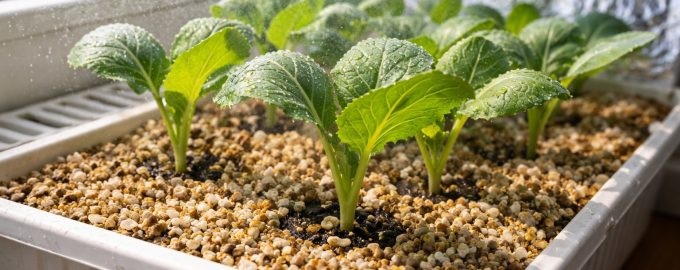 Εάν το στέλεχος έχει ήδη γίνει τόσο λεπτό όσο μια κλωστή, ο ψεκασμός δεν θα βοηθήσει. Σε αυτή την περίπτωση, χρησιμοποιώ τη μέθοδο ψυχρό φράγμα. Η ιδέα είναι απλή: γλάστρες με φυτά τοποθετούνται σε ένα βαθύτερο δίσκο γεμάτο με υγρό διογκωμένο πηλό. Καθώς το νερό εξατμίζεται, δημιουργείται ένα κουκούλι δροσερού αέρα γύρω από το λάχανο.