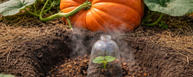 Ο βασικός κανόνας είναι ότι οι κολοκύθες αγαπούν το “παχύ” έδαφος και τη ζέστη. Την άνοιξη, το έδαφος θερμαίνεται αργά, οπότε χρησιμοποιώ την τεχνική της τοπικής θέρμανσης.