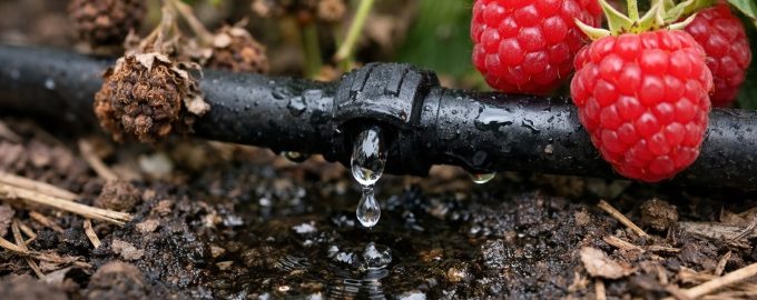 Η τακτική και βαθιά διαβροχή του εδάφους σε συνδυασμό με το ποιοτικό mulching εξασφαλίζει ότι τα σμέουρα παραμένουν ζουμερά και μεγάλα ακόμη και την πιο ξηρή εποχή.