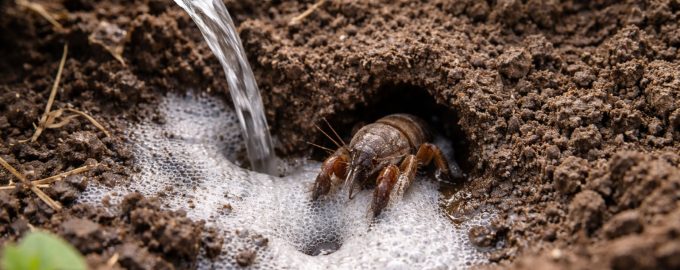 “Το μυστικό είναι να ρίχνετε το διάλυμα αργά, αφήνοντάς το να γεμίσει όλες τις διακλαδώσεις του περάσματος. Το σκαθάρι αρχίζει να ασφυκτιά και πετάγεται μόνο του στην επιφάνεια, όπου είναι εύκολο να πιαστεί”.