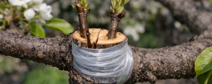 Τοποθετήστε 2-3 μοσχεύματα στην κορυφή της κόμης του δέντρου σας χρησιμοποιώντας τη μέθοδο “σχισίματος” ή “κάτω από τον φλοιό”.
