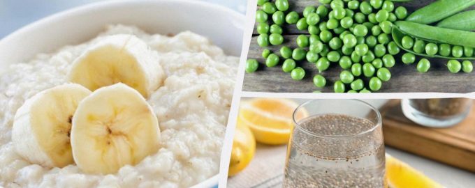 Οι σπόροι Chia και τα πράσινα μπιζέλια ξεπερνούν το πλιγούρι βρώμης σε περιεκτικότητα σε φυτικές ίνες / κολάζ από My, photo by depositphotos.com