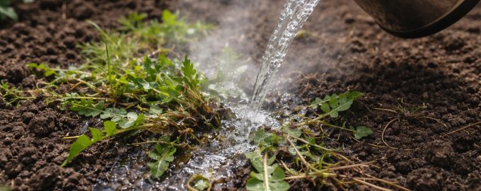 Χρησιμοποιήστε απότομο βραστό νερό μόλις οι πρώτοι πράσινοι “βρόχοι” βγουν από το έδαφος.