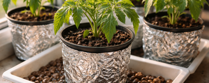 | Υπερθέρμανση του εδάφους | Φύλλα που κατσαρώνουν προς τα μέσα | Οθόνη από φύλλο αλουμινίου σε γλάστρες |