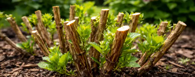 Δενδρώδης ορτανσία (π.χ. Anabelle) απαιτεί την αφαίρεση των παλαιών κορμών κάθε τέσσερα χρόνια.