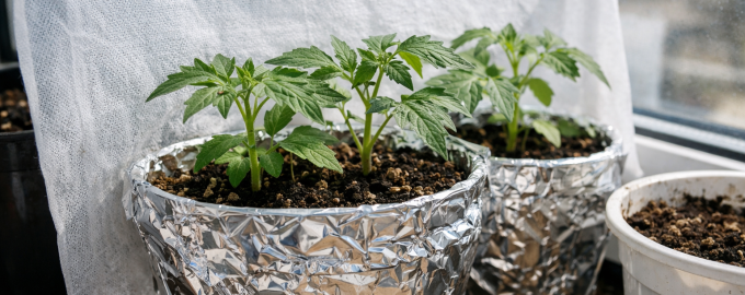 Τυλίξτε τις γλάστρες με απλό αλουμινόχαρτο ή λευκό χαρτί για να αντανακλούν τις ακτίνες.