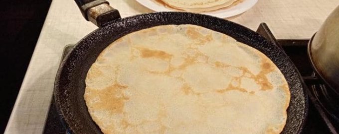 της οποίας οι τηγανίτες βγαίνουν πάντα τέλειες, έδειξε το τηγάνι της: ένα παλιό χυτοσίδηρο που την υπηρετεί εδώ και 30 χρόνια. Δεν το πλένει ποτέ με νερό και σαπούνι, απλώς το σκουπίζει με αλάτι και λάδι, και οι τηγανίτες βγαίνουν σαν βούτυρο.