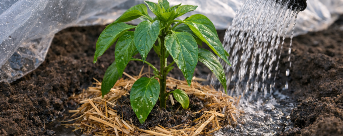 Μυστική απόχρωση: αν η πιπεριά άρχισε να μαραίνεται στον ήλιο, μη βιαστείτε να την πλημμυρίσετε με νερό. Ψεκάστε τους θάμνους κατά μήκος των φύλλων με ένα ασθενές διάλυμα γλυκόξινο οξύ – είναι ένα ισχυρό προσαρμογόνο που βοηθά το φυτό να “αντλεί” υγρασία ακόμη και αν οι ρίζες έχουν υποστεί ζημιά.