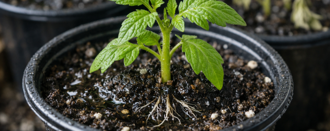 – Μην ταΐζετε τα φυτά τομάτας για τουλάχιστον 10 ημέρες μετά τη φύτευση. – Χρησιμοποιείτε μόνο μαλακό, καλά στραγγιζόμενο νερό. – Εάν το στέλεχος αραιώνει στη βάση (μαύρο πόδι), αφαιρέστε αμέσως το άρρωστο φυτό και ποτίστε το υπόλοιπο με διάλυμα μαγγανίου.