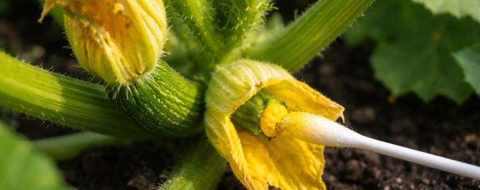 Διαλέξτε το αρσενικό λουλούδι, αφαιρέστε προσεκτικά τα πέταλα και αγγίξτε το κέντρο του θηλυκού άνθους (έχει ένα μικρό αντίγραφο κολοκυθιού στη βάση) με τον στήμονα.