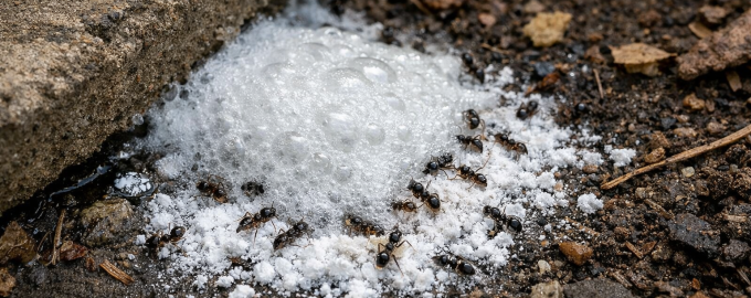 Εάν βρείτε μια μεγάλη φωλιά στο ανοιχτό έδαφος, μπορείτε να χρησιμοποιήσετε μια ισχυρή αντίδραση εξουδετερώσεις. Πρώτα γεμίστε τις τρύπες με μαγειρική σόδα και στη συνέχεια γεμίστε τις με ξύδι. Ο αφρός που θα προκύψει θα εισχωρήσει στα βαθύτερα κανάλια της μυρμηγκοφωλιάς, καλύπτοντας περιοχές όπου η συνηθισμένη σκόνη δεν φτάνει.