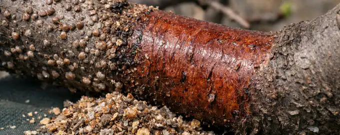 Ναι, το ανοιξιάτικο χαλάρωμα της ρίζας και ο ψεκασμός της με ελαφρύ διάλυμα χαλκού βοηθά στην εξόντωση των σταδίων διαχείμασης των παρασίτων.