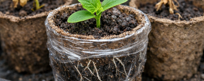 Συνιστάται να κόψετε ή να αφαιρέσετε εντελώς τον πυθμένα της γλάστρας, καθώς η τύρφη στο έδαφος αποσυντίθεται πολύ αργά και εμποδίζει την ανάπτυξη των ριζών.