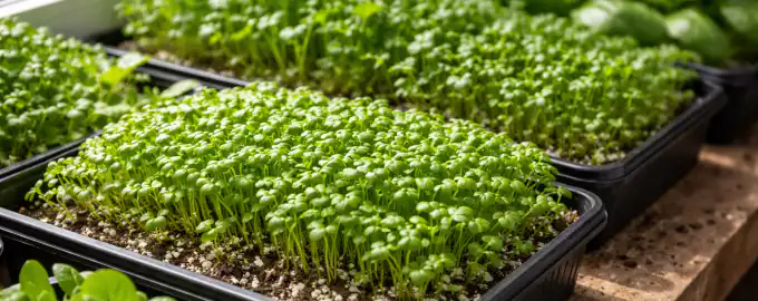 Το μυστικό της γρήγορης εκκίνησης έγκειται στη σωστή επιλογή των σπόρων. Μην αναλαμβάνετε αμέσως ιδιότροπα φυτά, είναι προτιμότερο να προτιμάτε καλλιέργειες που συγχωρούν τα λάθη στους αρχάριους. Εξαιρετικά δείχνουν τον εαυτό τους νεροκάρδαμο, μουστάρδα φύλλων и ρόκα. Έχουν υψηλή βλαστική ζωηρότητα και σχηματίζουν πυκνό κάλυμμα ήδη από τα πρώτα στάδια.