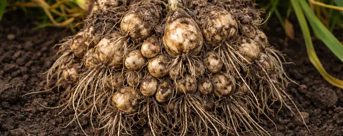 – Ξεθάψτε τους βολβούς όταν το φύλλωμα έχει κιτρινίσει εντελώς και βρίσκεται στο έδαφος.