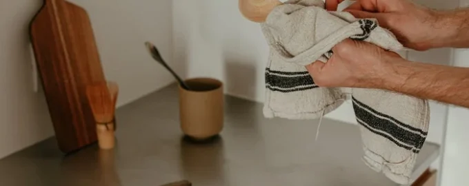 Για να διατηρήσετε τις πετσέτες κουζίνας καθαρές και την κουζίνα σας ασφαλή, οι ειδικοί συμβουλεύουν να απομακρύνετε αμέσως τα επικίνδυνα προϊόντα με απολυμαντικά μαντηλάκια ή χλωρίνη. “Αυτό όχι μόνο προστατεύει τις πετσέτες, αλλά απολυμαίνει και τις επιφάνειες εργασίας”, τονίζει ο Roberts.