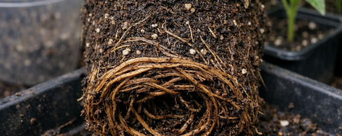 Οι πιπεριές έχουν μια ρίζα βρύσης που αρχίζει να λυγίζει και να πλέκεται όταν φτάσει στον πυθμένα ενός μικρού φλιτζανιού. Αυτό έχει ως αποτέλεσμα σοβαρό στρες και πλήρη αποκλεισμό της αφομοίωσης. θρεπτικά συστατικά από το έδαφος.