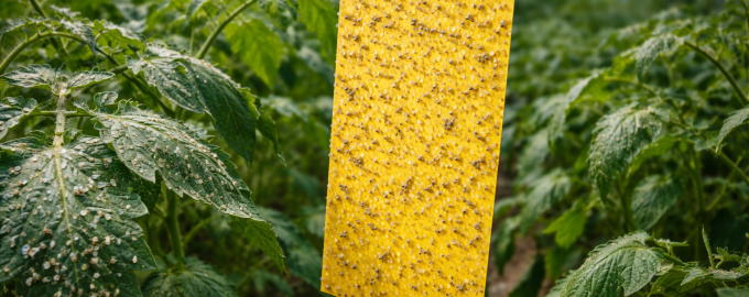 Κρεμάστε φωτεινά κίτρινα σίτες κόλλας πάνω από τις κορυφές των φυτών.
