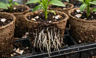 Κατά τη μεταφύτευση ντομάτας και πιπεριάς σε ξεχωριστά δοχεία, θάβονται μέχρι τα φύλλα του σπορόφυτου – η μέθοδος αυτή διεγείρει τον σχηματισμό πρόσθετων ριζών κατά μήκος ολόκληρου του στελέχους.