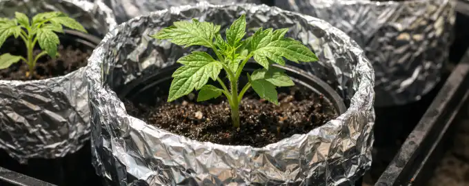 Το προσωπικό μου δοκιμασμένο κόλπο κατά της υπερθέρμανσης των ριζών σε νότια παράθυρα είναι να τυλίγετε σφιχτά πλαστικά ποτήρια με συνηθισμένο αλουμινόχαρτο τροφίμων με τη γυαλιστερή πλευρά προς τα έξω.