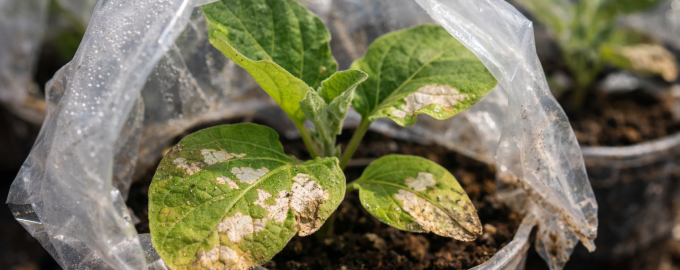 | Κατάσταση των φύλλων | Εμφανίζονται ωχρές, ξηρές λευκές κηλίδες | Ομοιόμορφα μαραίνονται, χάνουν τη σπαργή τους |