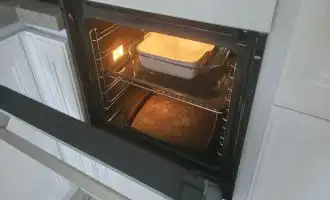 Ψήστε το κέικ για 35-40 λεπτά, αναφερόμενοι στο φούρνο: το κέντρο θα πρέπει να έχει ψηθεί καλά και μια οδοντογλυφίδα θα πρέπει να βγαίνει σχεδόν στεγνή. Το πιο σημαντικό είναι να μην κρατάτε το γλυκό στο φούρνο για πολλή ώρα, ώστε να παραμείνει πολύ μαλακό και υγρό στο εσωτερικό του.