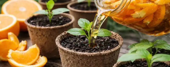 Η φλούδα πορτοκαλιού περιέχει τεράστια ποσότητα βιταμινών και βασικών ιχνοστοιχείων. Περιέχει υψηλές συγκεντρώσεις καλίου και φωσφόρουτα οποία είναι ζωτικής σημασίας για τα νεαρά βλαστάρια στην αρχή της ανάπτυξής τους.