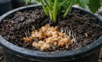 Χαλαρώστε απαλά την ανώτερη κρούστα του εδάφους με μια τσουγκράνα.