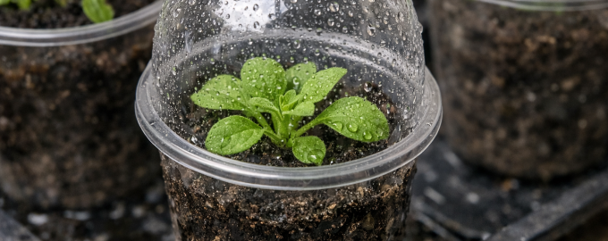 Καλύψτε κάθε σπορόφυτο με μια διαφανή πλαστική κουκούλα ή μεμβράνη