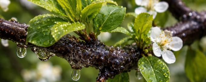 Η εμφάνιση παρασίτων κατά τη διάρκεια του μπουμπουκιού ή της φυλλοβόλησης απαιτεί άμεση αντίδραση. Αυτή είναι η εποχή κατά την οποία δημιουργείται το δυναμικό για μελλοντική καρποφορία. Πυρίτιδα σημύδας ξεχωρίζει ανάμεσα σε πολλές φαρμακευτικές θεραπείες για την ισχυρή απωθητική της δράση. Το πικάντικη οσμή αποπροσανατολίζει τα έντομα και τα αναγκάζει να εγκαταλείψουν βιαστικά τα κλαδιά.