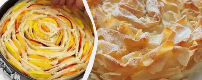 Αν έχετε βαρεθεί το κλασικό επιδόρπιο, μπορείτε να φτιάξετε αυτό. Η μηλόπιτα με φύλλο βγαίνει πολύ νόστιμη / Κολάζ My, στιγμιότυπο οθόνης Απολύτως όλες