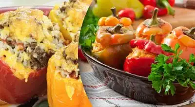 Συνταγή για γεμιστές πιπεριές με ζουμερή γέμιση. Αντιγραφή συνδέσμου Γεμιστές πιπεριές – συνταγή / κολάζ: My, φωτογραφία: depositphotos.